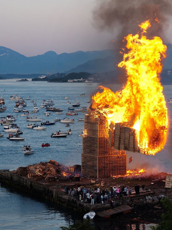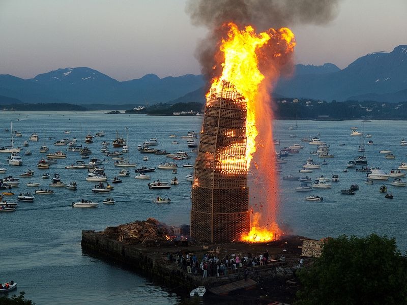 Pero, ¿sabes cuáles la ciudad donde se monta la más grande? Al parecer, en la ciudad noruega de Alesund tienen el record desde 2010, cuando se construyó una torre de 40,45 metros para después prenderla. Por seguridad, este fuego se realiza cerca del mar para que, al caer los resto, no incendien nada a su alrededor.